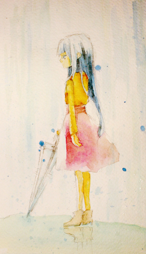 Trời đang mưa. Mùa hè ở đây là thế, âm u và mưa. Đôi lúc cũng có chút nắng hửng lên. Những lúc như thế mọi người đều trải khăn nằm phơi mình trên bãi cỏ. Em nói điều đó thật lạ lùng vì ở nơi em sống người ta thường trốn nắng, sợ mình bị đen đi và như thế thì rất xấu. Ở chỗ tôi thì ngược lại! Thật thú vị! Tôi ngồi trong phòng ngao ngán, lặng ngắm từng giọt mưa chảy trên của kính. Tôi giật mình nhìn ra ngoài. Trong màn mưa có bóng người nhỏ, hình như là em. Tôi vội đuổi theo...