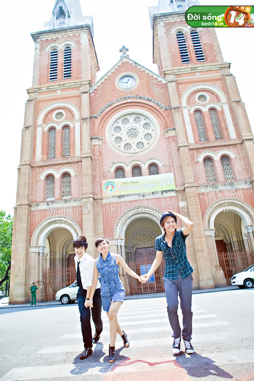 Ít ai biết, Anh Quốc, Tâm Tít và Huỳnh Anh là những người bạn khá thân thiết ngoài đời nên nhân một buổi trưa rảnh rỗi, cả ba đã cùng hẹn hò nhau ra khu Nhà thờ Đức Bà, Tp. HCM để “pose” ảnh.