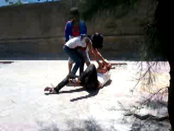Đoạn clip có độ dài 31 giây mở đầu bằng cảnh nữ sinh bị một bạn nữ túm tóc lôi ra nơi vắng người và đánh tơi bời. Người này đã nhảy lên và dùng chân đạp thẳng vào đầu khiến nữ sinh này nằm gục xuống.