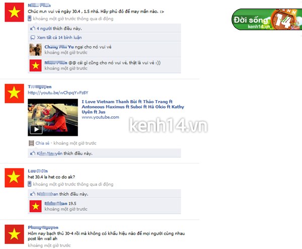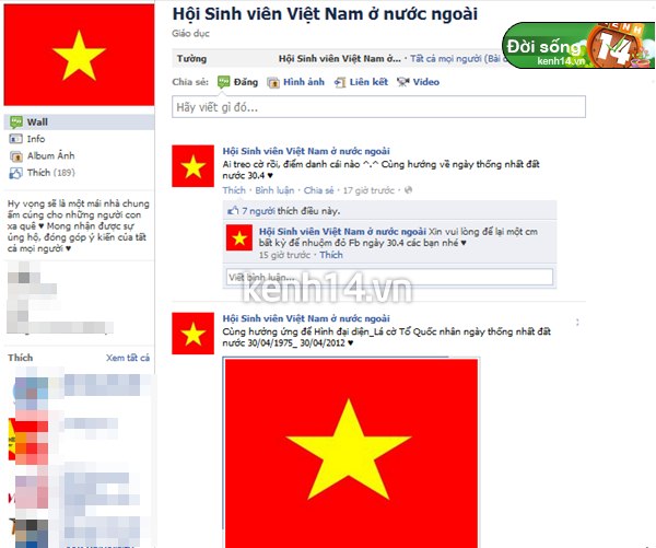 Những ngày vừa qua trên Facebook, giới trẻ Việt đã rục rịch lên kế hoạch thay đổi avatar thành cờ Tổ Quốc để chào đón ngày Giải phóng miền Nam, thống nhất Tổ Quốc 30/4, ngày Quốc tế Lao Động 1/5 và ngày Sinh nhật Bác Hồ 19/5. Đến ngày hôm nay, một màu đỏ rực rỡ đã làm nên không khí tuyệt vời trên facebook trong ngày Tết Độc Lập. Hàng vạn Facebook-er đã phủ đỏ mạng xã hội này bằng quốc kỳ, ngày hôm nay ai ai vào Facebook đều cảm thấy nức lòng và tự hào dân tộc về chiến thắng lịch sử của Việt Nam ngày 30/4 của 37 năm về trước.