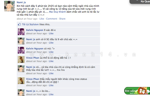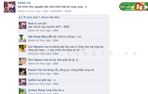 Rất nhiều teen đã ngay lập tức để stt FB về vụ động đất.