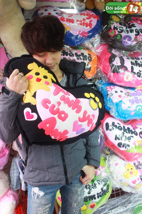 Gối này đáng yêu ghê, nhưng hơi đắt (165K), mà lại toàn những dòng chữ tình cảm, hic.