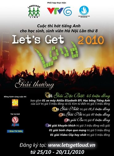 Tập đoàn Giáo dục Quốc tế Language Link Việt Nam phối hợp cùng Đài Truyền Hình Việt Nam - Ban Thanh Thiếu Niên VTV6 và Trung tâm Hỗ Trợ và Phát triển Sinh viên Việt Nam thuộc Hội Sinh Viên, Báo Hoa Học Trò 2! sẽ tổ chức cuộc thi hát tiếng Anh “Let’s Get Loud” dành cho học sinh THPT, sinh viên Hà Nội lần thứ VIII.