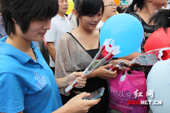 "Ai có thể gọi Lei Ying đến, tôi sẽ tặng người ấy một sợi dây chuyền bạch kim". Liu Hang vừa nói vừa đưa cho mỗi người đứng xung quanh một đóa hoa hồng có gắn mảnh giấy ghi số điện thoại của Lei Ying.