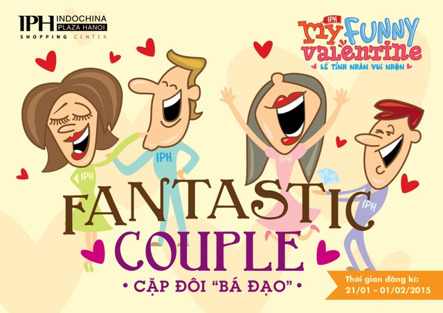 Các cặp đôi cũng sẽ có cơ hội gắn kết và thể hiện tình cảm của mình với cuộc thi “Cặp đôi bá đạo”. 30 cặp đôi sẽ tay trong tay vượt qua thử thách thú vị, hài hước nhưng không hề dễ dàng tại IPH để trở thành cặp đôi “bá đạo” nhất và nhận được giải thưởng hấp dẫn. Tại sự kiện chính của “My Funny Valentine”, BTC cũng sẽ công bố kết quả của cuộc thi online “Khoảnh khắc tình yêu hài hước” đang thu hút cộng đồng mạng. Những câu chuyện tình yêu “cười chảy nước mắt” được chia sẻ chắc chắn sẽ mang đến cho bạn một Valentine thật khác.
