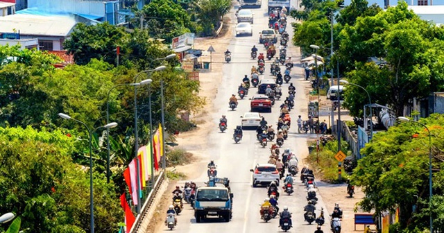 Dòng người nối đuôi nhau di chuyển trên tuyến Quốc lộ 62.