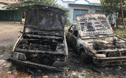 Ngọn lửa bén từ bãi rác rồi lan sang 2 chiếc xe ô tô cũ đậu ven đại lộ Nguyễn Văn Linh, xã Bình Hưng, huyện Bình Chánh, TP.HCM. Chỉ chưa tới 10 phút, ngọn lửa đã thiêu rụi cả 2 phương tiện.