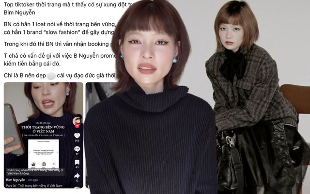 "Top Tiktoker thời trang mà tôi thấy có sự xung đột trong nhân cách rõ ràng nhất có lẽ là Bim Nguyễn. Bim Nguyễn nói về thời trang bền vững, lên án fast fashion, overconsumption và có hẳn 1 brand 'slow fashion' để gây dựng hình ảnh KOL xanh. Trong khi đó thì Bim Nguyễn vẫn nhận booking promote và mua fast fashion đều... Chỉ là Bim nên dẹp cái vụ đạo đức giả thời trang bền vững đi".