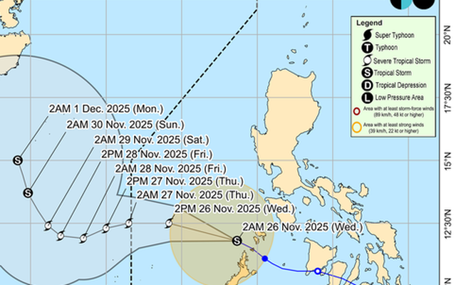 PAGASA cũng cho rằng bão số 15 - Koto có thể đạt cấp "bão nhiệt đới mạnh" vào chiều 26-11 (tương đương bão cấp 10-11) và tiếp tục mạnh lên trong ngày 27-11 do điều kiện thời tiết thuận lợi.