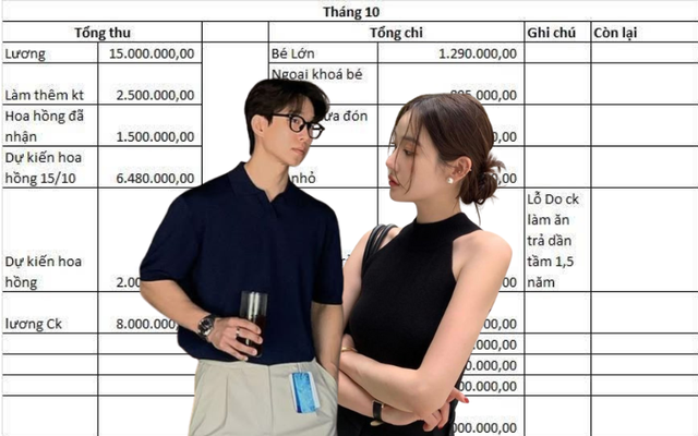 Hiện tại, mức lương của anh là 8 triệu/tháng, gần như chỉ có 1 mình cô gồng gánh kinh tế gia đình. Ngoài công việc chính với mức lương 15 triệu/tháng, cô vợ còn làm thêm nhiều công việc khác, mới kiếm được khoảng gần 12,5 triệu/tháng. Tổng thu nhập của gia đình rơi vào khoảng gần 35,5 triệu/tháng, trong đó tổng tiền phải trả nợ là 19,6 triệu đồng - Tương đương hơn 55% thu nhập.
