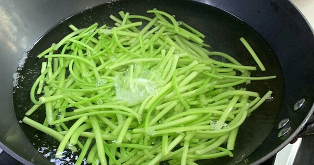 - Muốn món rau này ngon bạn nên để lửa lớn, cho cọng khoai lang vào, thêm một thìa muối rồi tiếp tục xào nhanh khoảng chục lần.