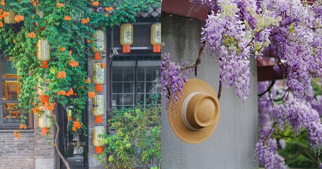 Khi nở rộ, tử đằng giống như một dòng thác tím mềm mại, cực kỳ hút mắt. Nhưng dây leo của nó phát triển rất mạnh, có thể chui vào các khe gạch, bám chặt vào tường.