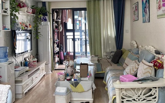 - Phòng khách nhỏ tới mức đặt sofa là hết lối đi.