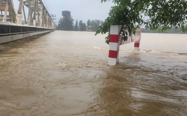 Nước đang lên và đã chạm đáy dầm cầu Bạch Hổ, Giả Viên (TP Huế).