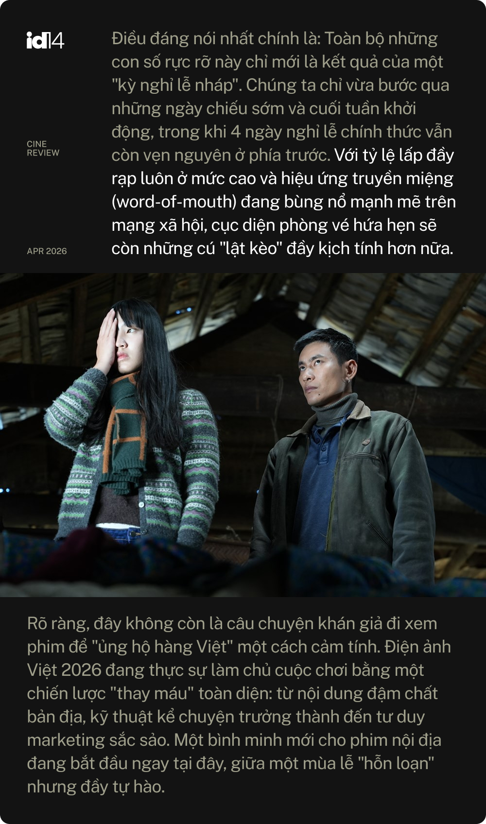 Rõ ràng, đây không còn là câu chuyện khán giả đi xem phim để "ủng hộ hàng Việt" một cách cảm tính. Điện ảnh Việt 2026 đang thực sự làm chủ cuộc chơi bằng một chiến lược "thay máu" toàn diện: từ nội dung đậm chất bản địa, kỹ thuật kể chuyện trưởng thành đến tư duy marketing sắc sảo. Một bình minh mới cho phim nội địa đang bắt đầu ngay tại đây, giữa một mùa lễ "hỗn loạn" nhưng đầy tự hào.