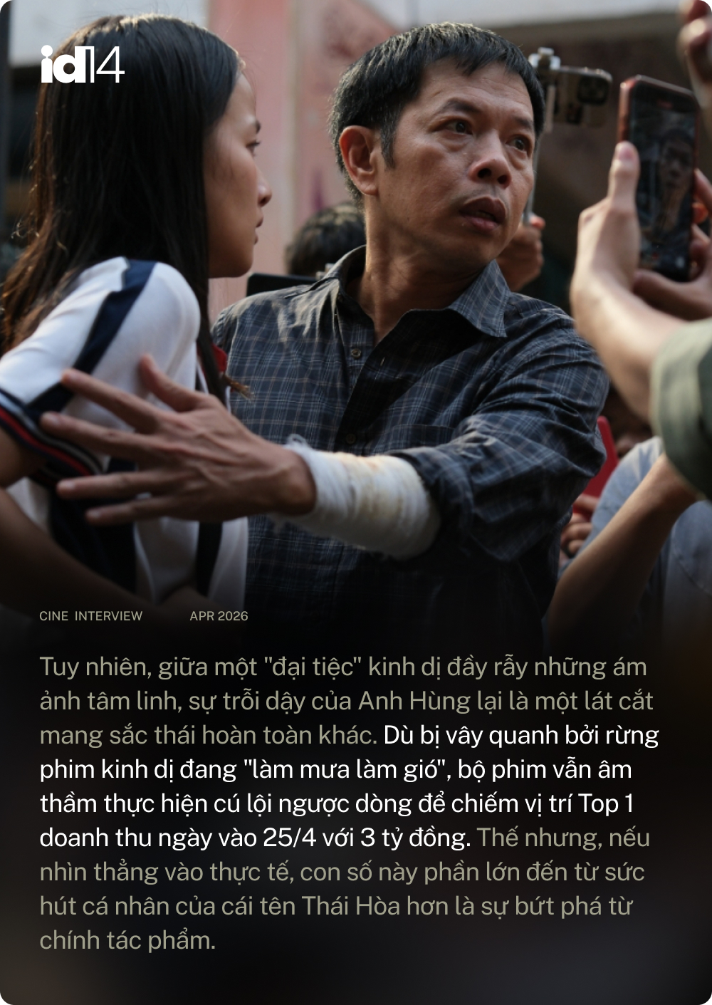 Tuy nhiên, giữa một "đại tiệc" kinh dị đầy rẫy những ám ảnh tâm linh, sự trỗi dậy của Anh Hùng lại là một lát cắt mang sắc thái hoàn toàn khác. Dù bị vây quanh bởi rừng phim kinh dị đang "làm mưa làm gió", bộ phim vẫn âm thầm thực hiện cú lội ngược dòng để chiếm vị trí Top 1 doanh thu ngày vào 25/4 với 3 tỷ đồng. Đây là một cái tát thẳng diện vào định kiến cho rằng "phim tâm lý khó sống mùa lễ".