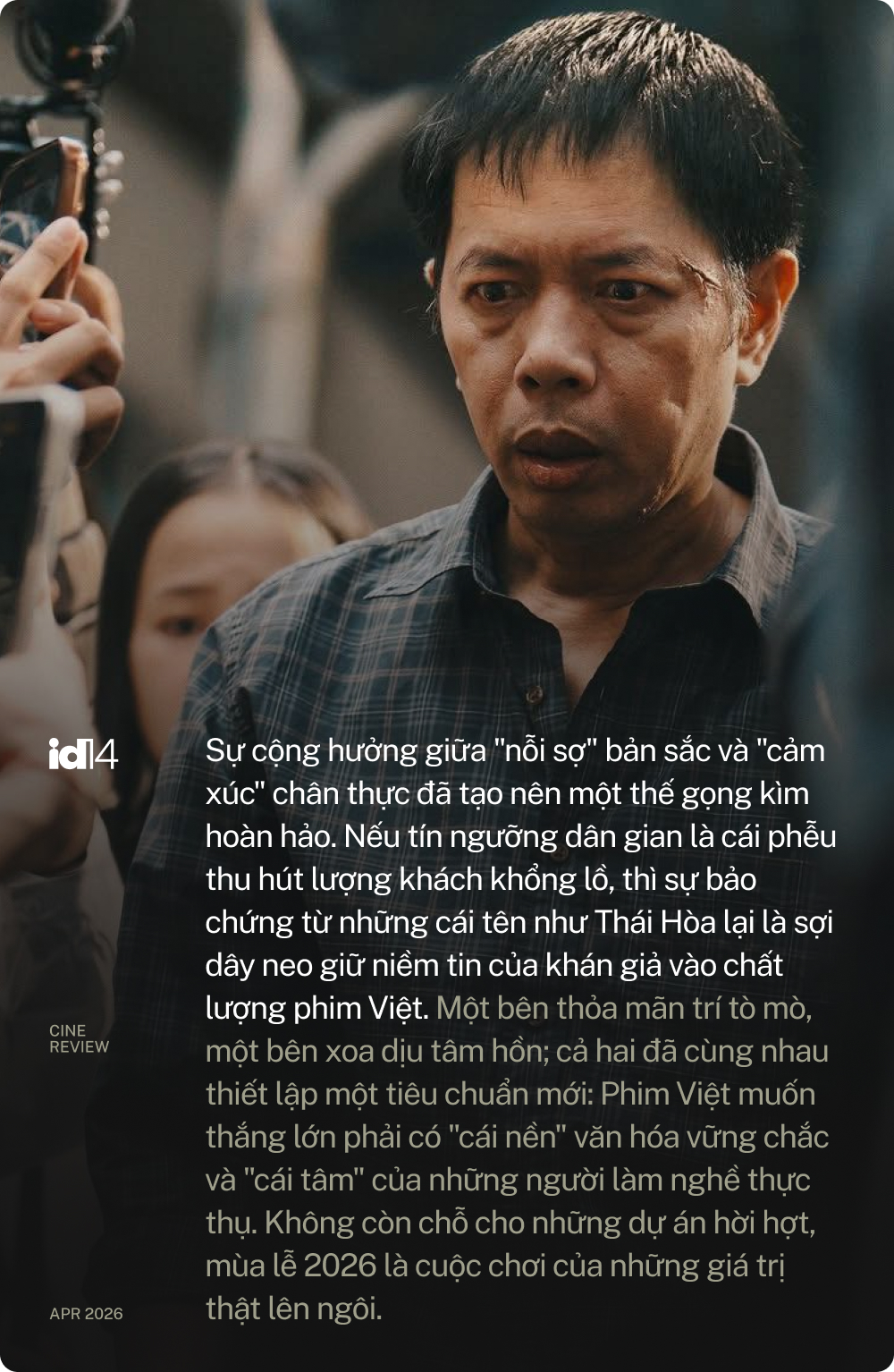 Sự cộng hưởng giữa "nỗi sợ" bản sắc và "cảm xúc" chân thực đã tạo nên một thế gọng kìm hoàn hảo. Nếu tín ngưỡng dân gian là cái phễu thu hút lượng khách khổng lồ, thì sự bảo chứng từ những cái tên như Thái Hòa lại là sợi dây neo giữ niềm tin của khán giả vào chất lượng phim Việt. Một bên thỏa mãn trí tò mò, một bên xoa dịu tâm hồn; cả hai đã cùng nhau thiết lập một tiêu chuẩn mới: Phim Việt muốn thắng lớn phải có "cái nền" văn hóa vững chắc và "cái tâm" của những người làm nghề thực thụ. Không còn chỗ cho những dự án hời hợt, mùa lễ 2026 là cuộc chơi của những giá trị thật lên ngôi.