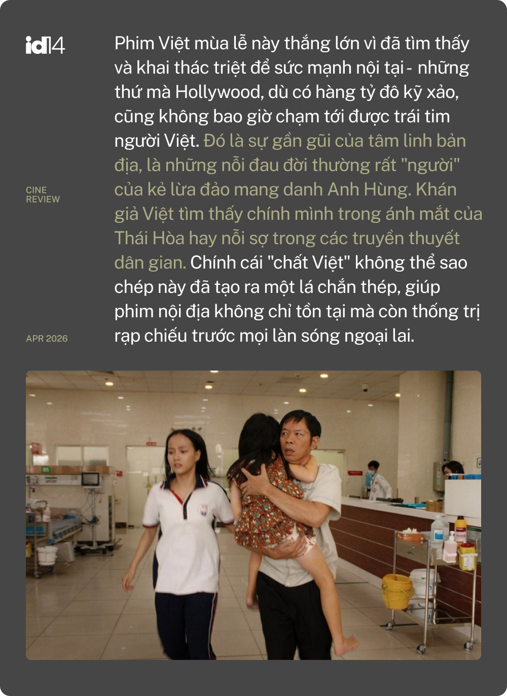 Dù vậy, không thể phủ nhận một thực tế: Phim Việt mùa lễ này thắng lớn vì đã tìm thấy và khai thác triệt để sức mạnh nội tại - những thứ mà Hollywood, dù có hàng tỷ đô kỹ xảo, cũng không bao giờ chạm tới được được trái tim người Việt. Đó là sự gần gũi của tâm linh bản địa, là những nỗi đau đời thường rất "người" của kẻ lừa đảo mang danh Anh Hùng. Khán giả Việt tìm thấy chính mình trong ánh mắt của Thái Hòa hay nỗi sợ trong các truyền thuyết dân gian. Chính cái "chất Việt" không thể sao chép này đã tạo ra một lá chắn thép, giúp phim nội địa không chỉ tồn tại mà còn thống trị rạp chiếu trước mọi làn sóng ngoại lai.