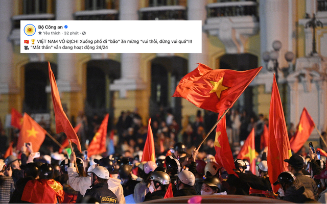 Cụ thể, trên fanpage, Bộ Công an đăng tải bài viết với dòng trạng thái: “VIỆT NAM VÔ ĐỊCH! Xuống phố đi ‘bão’ ăn mừng ‘vui thôi, đừng vui quá’!!! ‘Mắt thần’ vẫn đang hoạt động 24/24”.