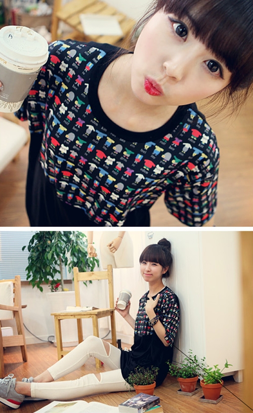 Dễ dàng và thông dụng nhất là bạn có thể trở thành một cô nàng tinh nghịch khi diện một chiếc áo pull họa tiết ngẫu hứng cùng short jeans hay jeans skinny và sneakers đế bệt.