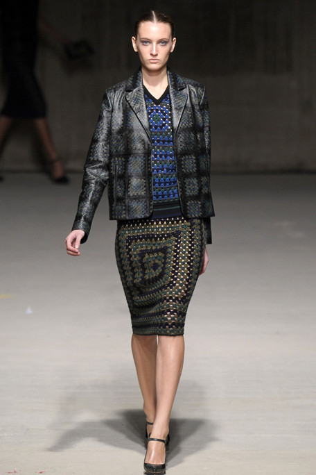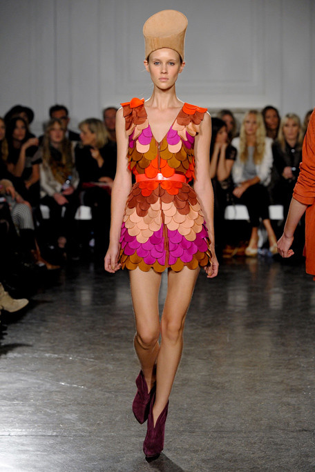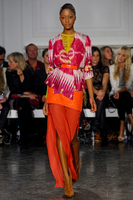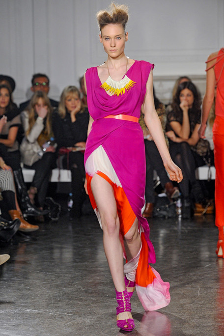 Nổi bật bằng sắc hồng tím, cam, vàng trên các loại họa tiết đường kẻ, màu loang, vảy cá… Sass & Bide làm mọi người "rực mắt" bởi sự nóng bỏng của màu sắc nhiệt đới phối hợp cùng họa tiết.