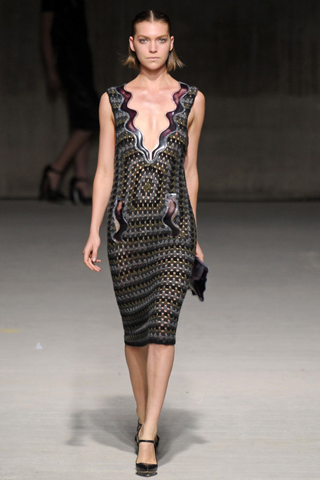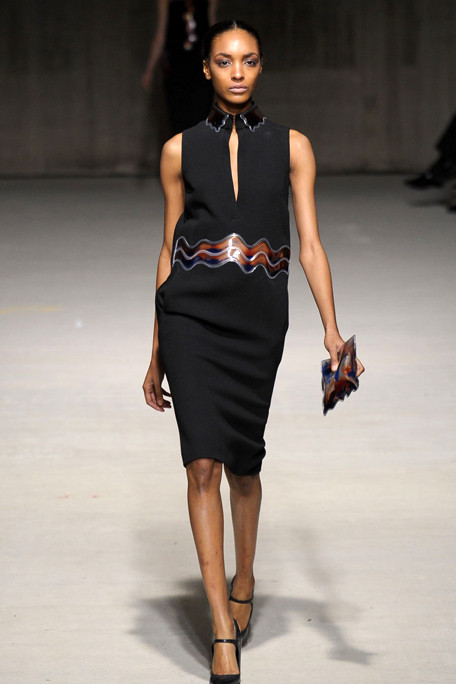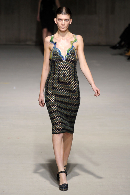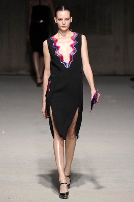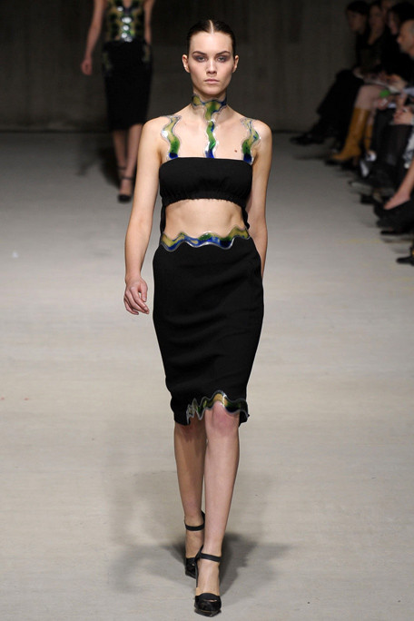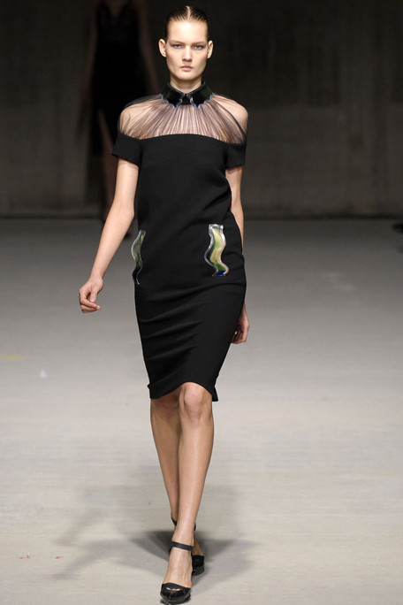 Sự "mê man" trong gam màu đen cuốn hút hòa cùng họa tiết đường thêu là điểm nhấn đặc biệt trong bộ sưu tập của Christopher Kane. Đường cắt ở cổ, chân váy được lấy cảm hứng mềm mại từ chiếc đuôi cá, rong biển cũng tạo nên sự tươi mới trong show lần này.