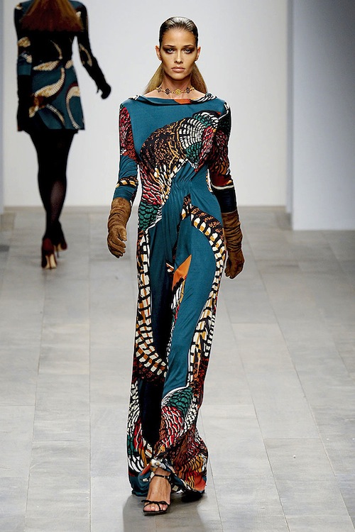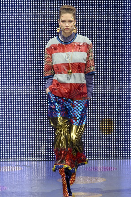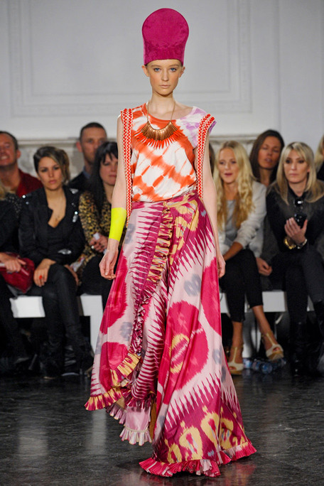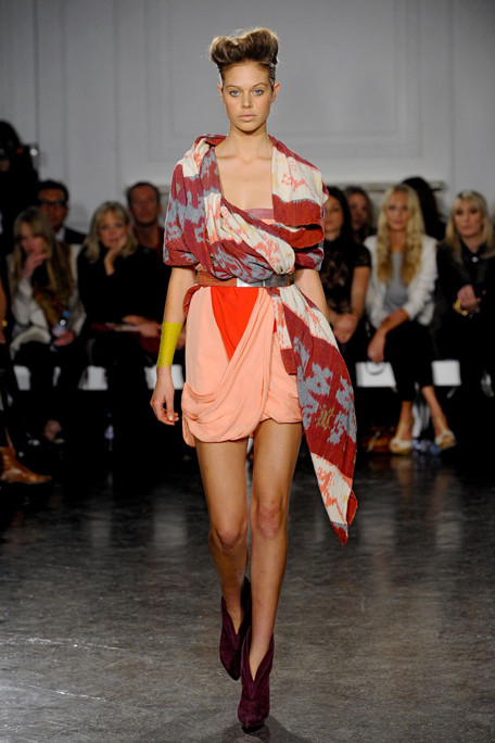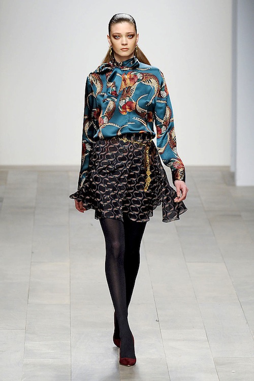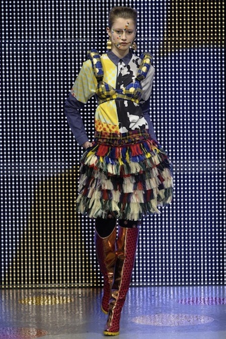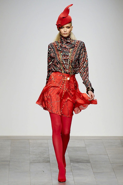 Đó là sự nổi bật của các loại họa tiết nghệ thuật trên trang phục, cùng cách kết hợp màu sắc ấn tượng, đến từ các nhãn hiệu Vivienne Westwood Red Label, Louise Gray, Sass & Bide….
