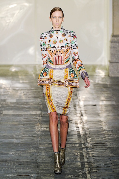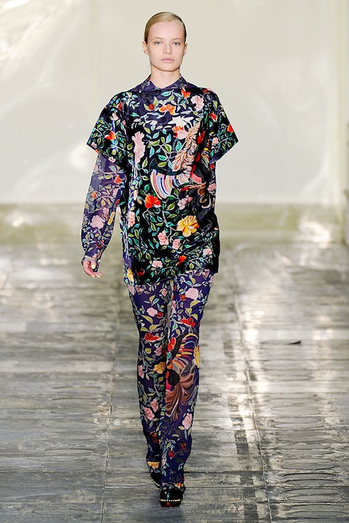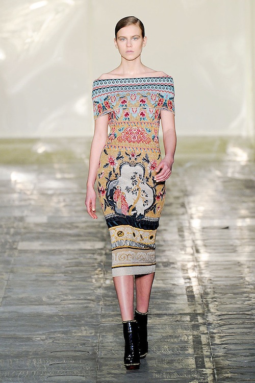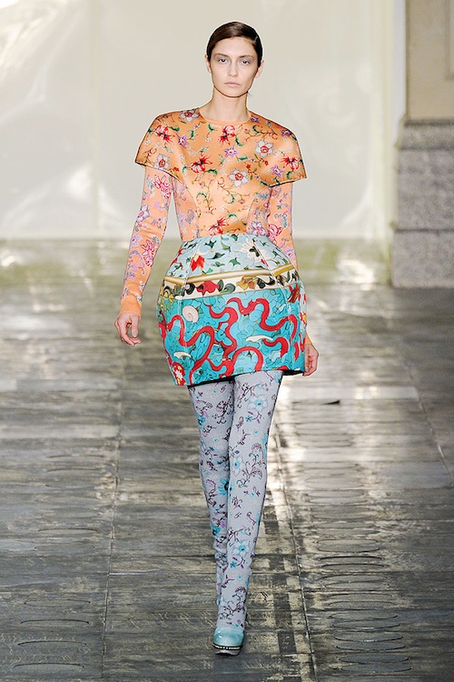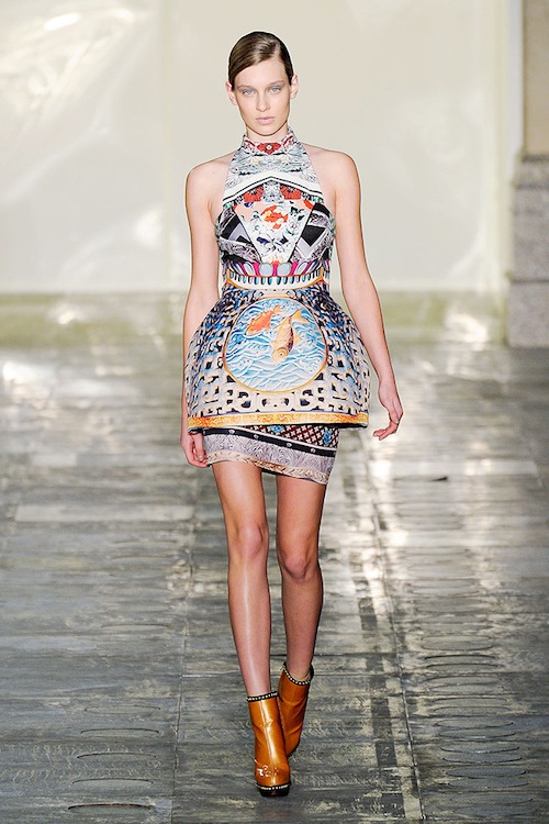 "Như những tác phẩm nghệ thuật" - đó là trích đoạn một lời nhận xét của khách tham dự show Mary Katrantzou. Những mẫu thiết kế như đem đến dòng hồi tưởng về nghệ thuật hoàng gia từ những thế kỷ trước, với họa tiết, hình vẽ, gam màu sang trọng, cầu kì, tinh tế.