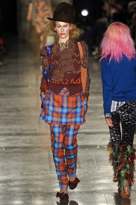 Như thường lệ, Vivienne Westwood lại mang đến bộ sưu tập với họa tiết carô làm chủ đạo với những kiểu sáng tạo mới lạ. Đó là sự đột phá ở màu sắc pha trộn trên trang phục, cùng cách make-up "kì lạ" của người mẫu trên catwalk (dát vàng lá lên mặt, phối màu gam nhũ…).