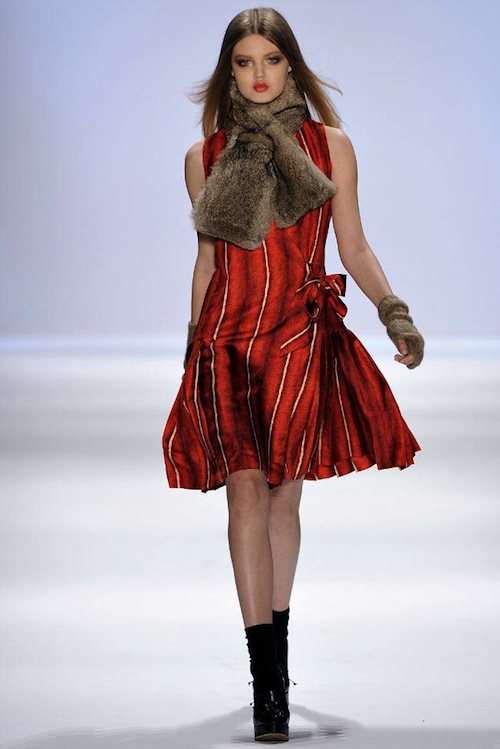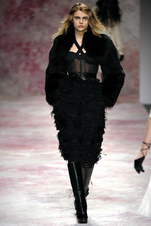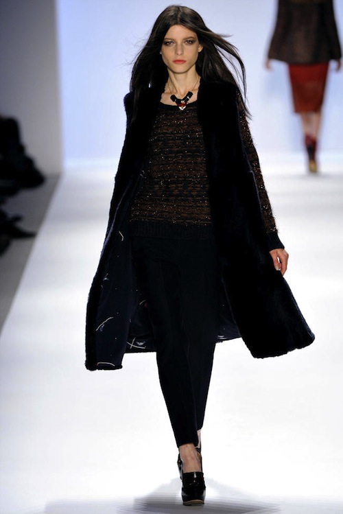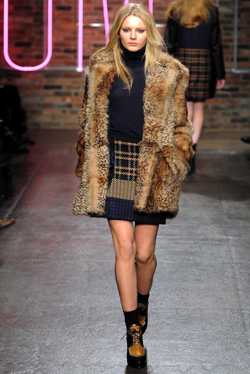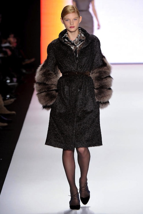 Những chiếc áo khoác lông cũng vẫn những sản phẩm được săn đón trong mùa rét 2011 khi hàng loạt các nhà thiết kế vẫn liên tục đưa ra những thiết kế áo khoác lông làm say lòng các tín đồ thời trang. Đặc biệt năm nay, những chiếc áo khoác lông lêch vai từ Anna Sui, Donna Karan, Rag&Bone... sẽ "chinh phục" những cô nàng mê váy.