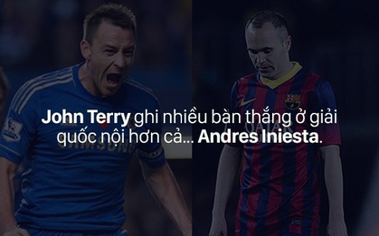 Barcelona chỉ giành được 1 chức vô địch La Liga trong 24 năm hay John Terry ghi nhiều bàn thắng ở giải quốc nội hơn Andres Iniesta là 2 trong số những sự thật mà... như đùa trong bóng đá.