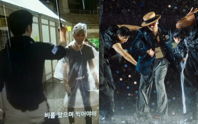 Vệ sĩ thân tín G-DRAGON đăng story ảnh "anh Long" mang áo mưa tập luyện buổi diễn của BIGBANG cách đây hơn 10 năm, với dòng mô tả bằng tiếng Hàn "Lại là trận chiến dưới mưa nữa sao?"