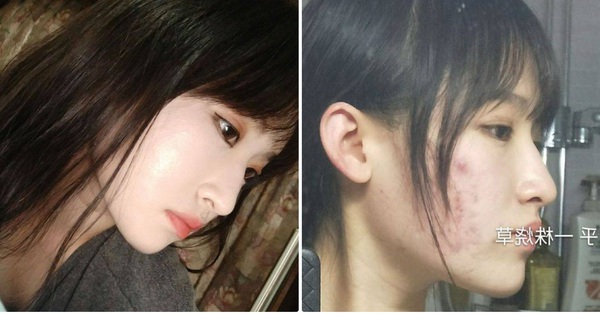 Mới đây, một cô nàng có tên Giai Giai đã khiến dân tình bất ngờ khi công khai ảnh mặt mộc với làn da đầy mụn. Trong bức ảnh được chỉnh sửa thì nhan sắc của Giai Giai thực sự không chê vào đâu được với khuôn mặt thon gọn và sống mũi cao. Dẫu vậy, làn da thật đã khiến cô nàng kém xinh đi vài phần.