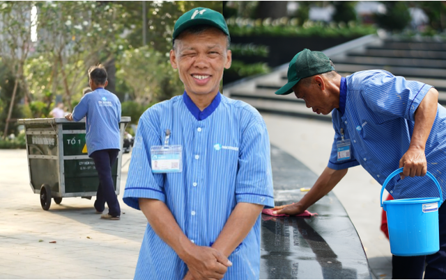 Nụ cười hiền và tinh thần lạc quan của chú lao công khiến nhiều người cảm mến.