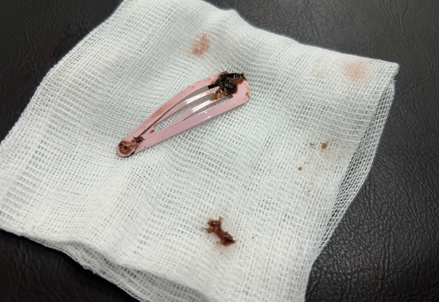 Kẹp tóc dài 7cm được gắp ra ngoài. (Ảnh: BV)