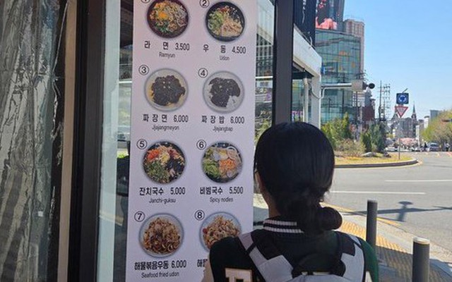 Một sinh viên đại học xem thực đơn bên ngoài một nhà hàng ở quận Seodaemun, Seoul, ngày 7 tháng 4. Ảnh của Na Min-seo, Korea Times.