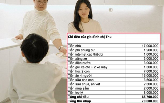 Khi cộng lại, con số chi tiêu hàng tháng dao động quanh 69–70 triệu, gần như trùng khớp với thu nhập của hai vợ chồng.