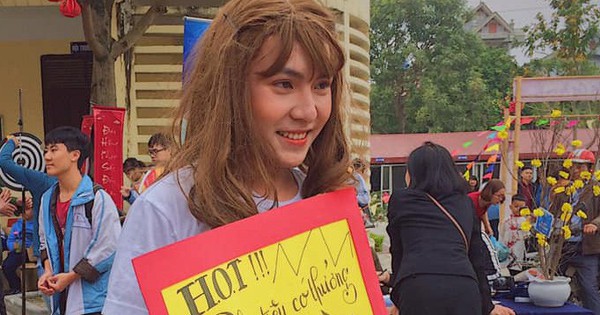 Danh tính chàng trai "xinh phát hờn" trong ảnh là Lê Kim Nghĩa, hiện đang học lớp 12I trường THPT Chuyên Lam Sơn (Thanh Hoá). Đây là những bức hình được chụp trong ngày hội Tết Tươi Tắn của trường khi Nghĩa được giao nhiệm vụ làm "PG" để mời chào khách tới tham gia gian hàng phi tiêu có thưởng của cả lớp. Và không phụ sự kỳ vọng của tập thể, nhờ nhan sắc vô cùng xinh gái của mình, Nghĩa đã lôi kéo được rất nhiều sự chú ý và khiến gian hàng của lớp mình đắt khách hơn hẳn.
