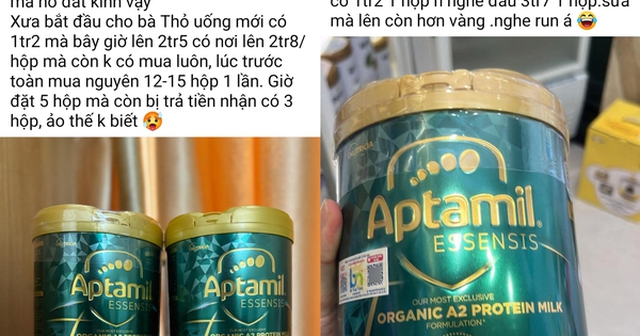 Một số bà mẹ cho biết chỉ trong vòng một tuần, giá sữa được rao bán trong các nhóm tăng đến chóng mặt. Giá của Aptamil Essensis số 3 thường dao động từ 1,6 triệu đến 2 triệu/hộp. Tuy nhiên, thời điểm hiện tại giá đã lên 2,4 triệu đến 2,6 triệu/hộp.
