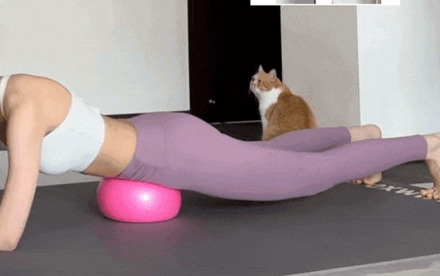 Sau khi cơ thể đã được “giải áp”, bạn chuyển sang động tác thứ hai – cũng là phần quan trọng nhất để cải thiện bụng dưới. Bắt đầu với tư thế chống bốn chân, kẹp một quả bóng yoga giữa hai đùi, sau đó nâng nhẹ đầu gối lên khỏi mặt sàn. Khi thở ra, siết chặt cơ bụng đồng thời kẹp chặt bóng; khi hít vào, thả lỏng. Lặp lại động tác này khoảng 100 lần.