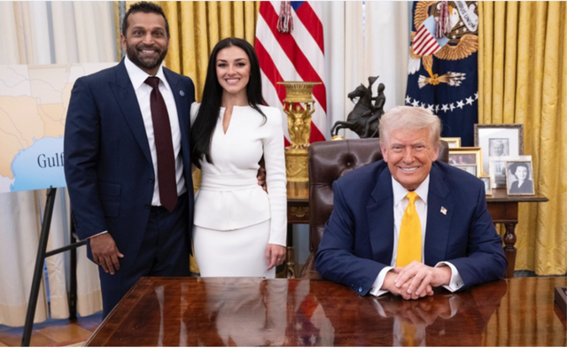 Giám đốc FBI Kash Patel và bạn gái Alexis Wilkins chụp ảnh cùng Tổng thống Mỹ Donald Trump. Ảnh: X/@AlexisWikins