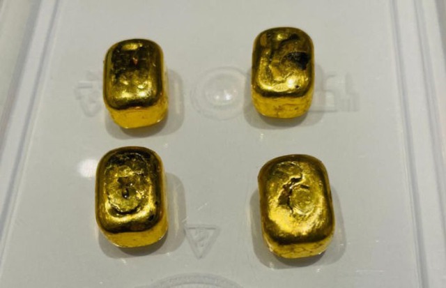 Trong quá trình kiểm tra chi tiết, cơ quan chức năng phát hiện người này giấu 4 thỏi vàng hình viên nang, mỗi thỏi được quấn băng keo đen, bên trong khoang miệng nhằm tránh bị phát hiện. Kết quả giám định cho thấy số vàng có độ tinh khiết 999, tương đương vàng 24 karat.