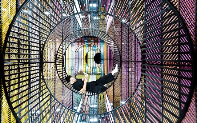 Không chỉ để ngắm, dải ánh sáng đủ màu của công viên còn là loạt mô hình uốn cong kiêm chức năng "ngả lưng" lý tưởng bên bờ sông.