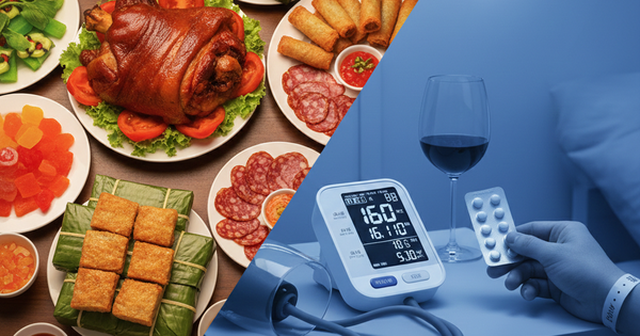Thịt kho, giò chả, đồ chiên rán làm tăng gánh nặng chuyển hóa mỡ; bánh kẹo, mứt ngọt khiến đường huyết dao động; rượu bia gây co mạch, tăng huyết áp và ảnh hưởng chức năng gan. Khi sử dụng liên tục nhiều ngày, cơ thể dễ mất cân bằng, làm trầm trọng bệnh lý sẵn có.