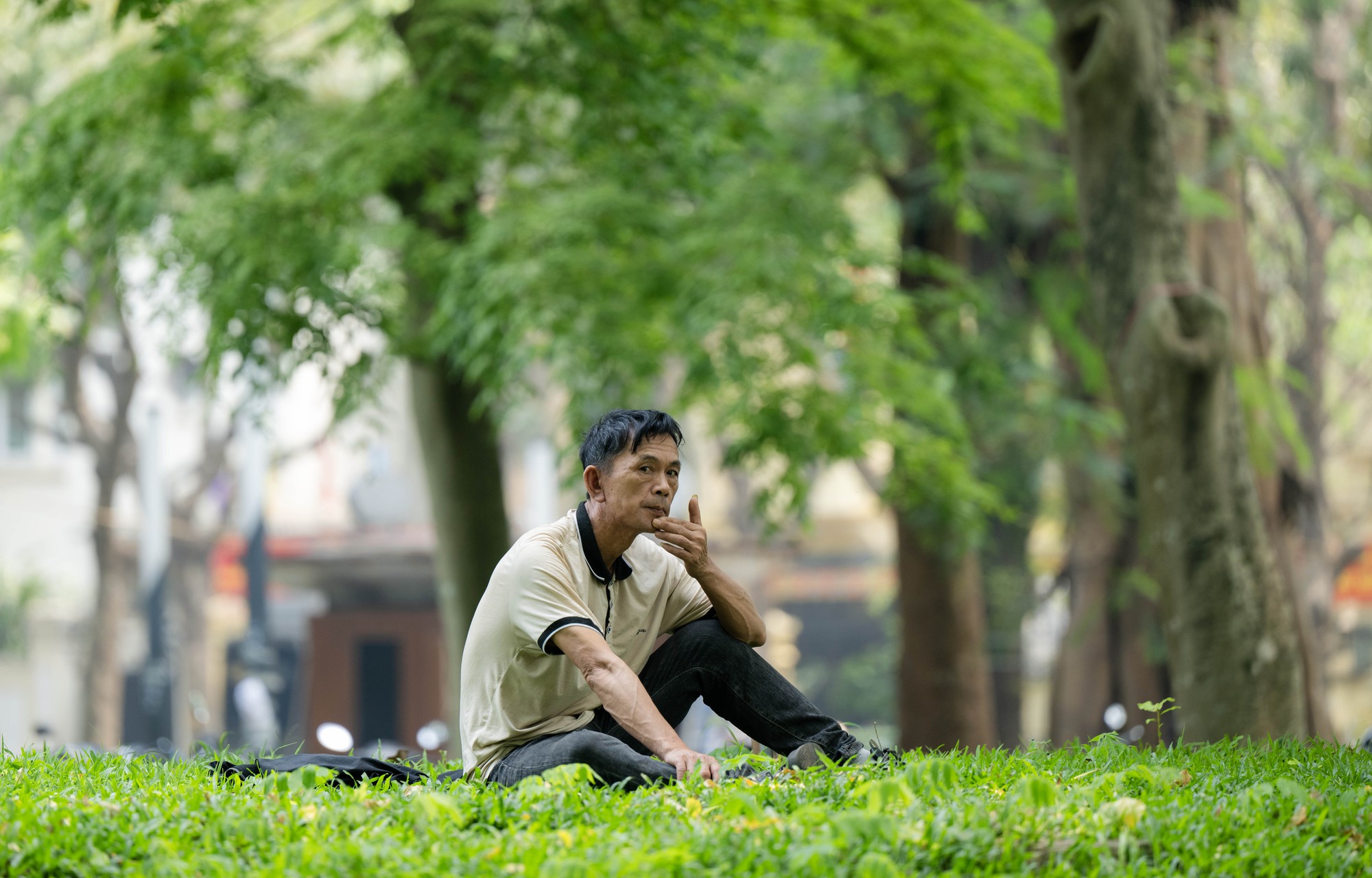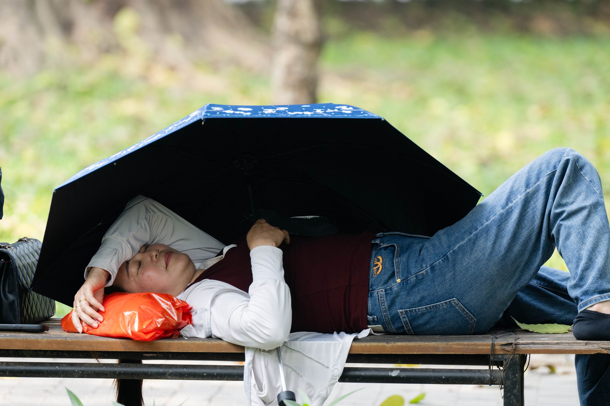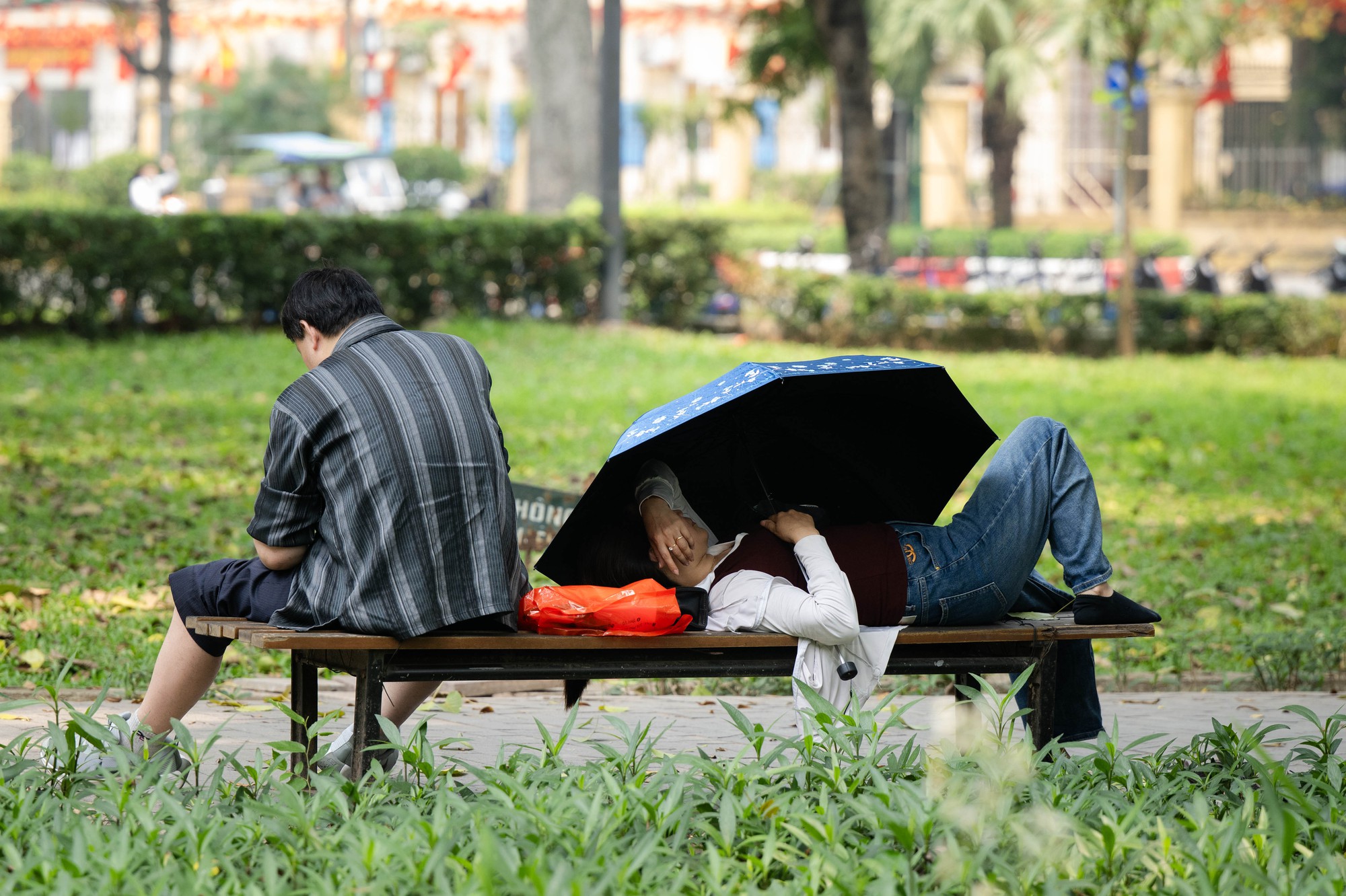 Giữa trưa 38 độ C ở Hà Nội: Công viên biến thành “phòng ngủ trưa” bất đắc dĩ của người lao động