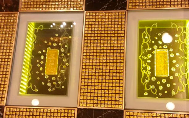 Vàng nguyên khối được đặt ở lối vào của khách sạn Grand Emperor.