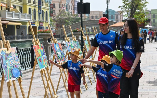 Các tác phẩm tranh vẽ từ cuộc thi "Gửi Tương Lai Xanh 2050" mùa 1 được giới thiệu trưng bày tại sự kiện "Ngày Hội Xanh 2025" do Vingroup tổ chức vào tháng 3/2025. Ảnh: QVTLX.