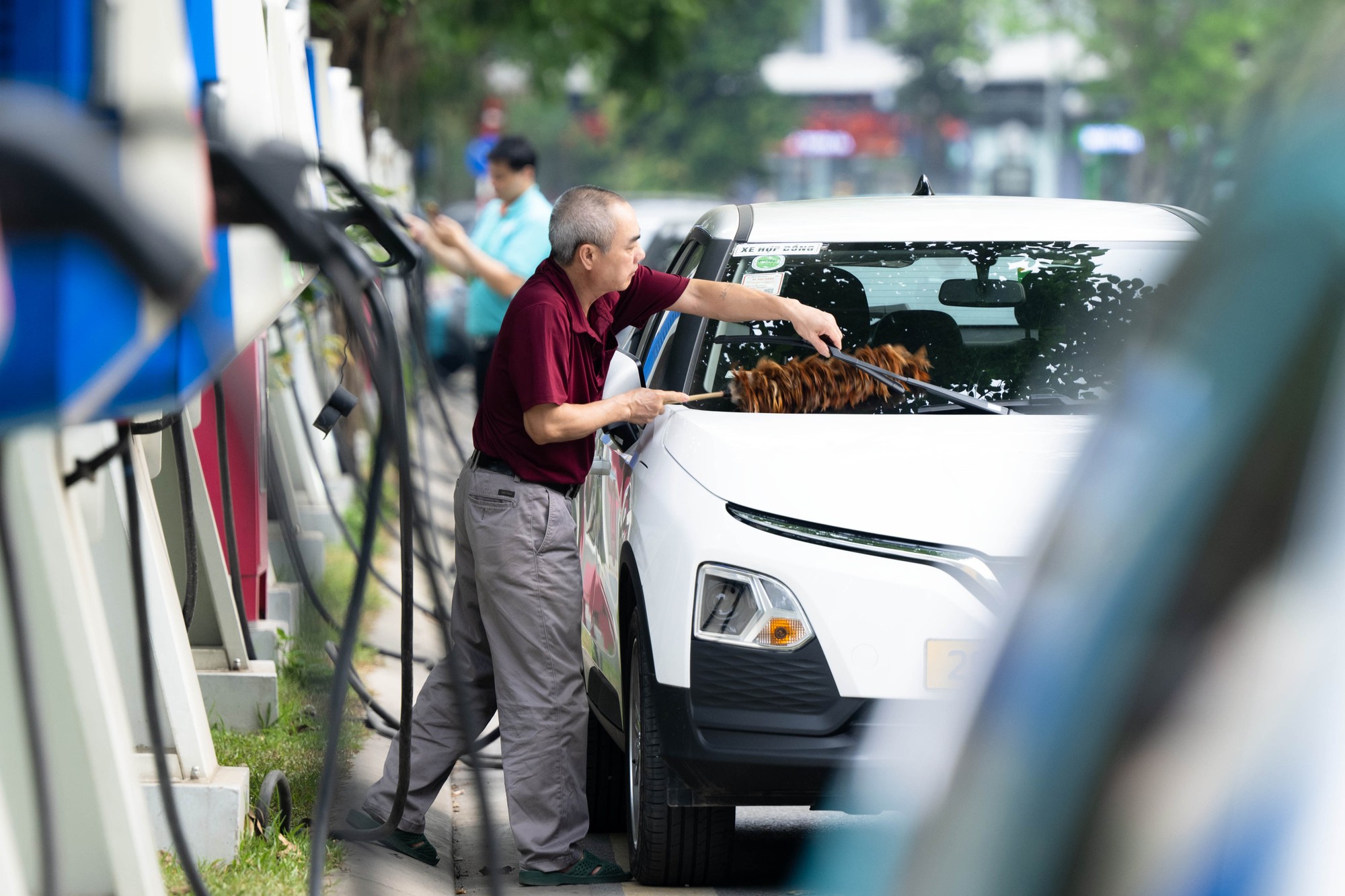 Các tài xế sạc điện tại trạm (Ảnh: Như Hoàn)