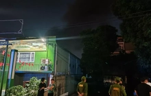 Lửa đã bùng lên nhanh chóng, bao trùm nhà xưởng. Cột khói đen cuồn cuộn bốc lên cao hàng chục mét.