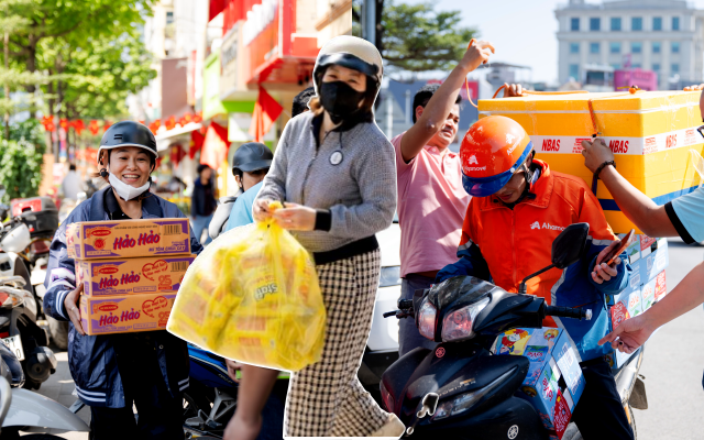 Nhiều người không thể đến trực tiếp thì đặt shipper giao hàng tận nơi. Một shipper cho biết trong buổi sáng anh đã giao hàng cứu trợ tới ba điểm khác nhau: "Khách nhắn rõ là gửi miền Trung. Chạy hơi vất vả nhưng việc này ý nghĩa nên mình thấy vui."